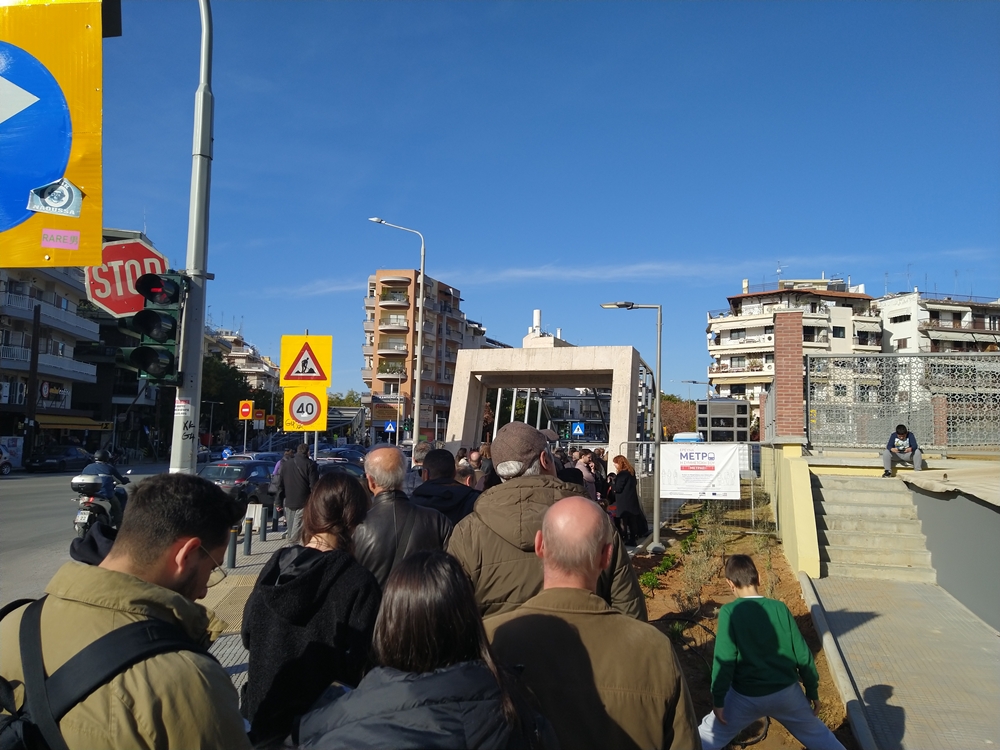 Η πρώτη κάθοδος στο μετρό της Θεσσαλονίκης, με τις κυλιόμενες σκάλες σε λειτουργία και η υποδοχή στον διάδρομο κάτω, έδωσε θέση στον πρώτο ενθουσιασμό του γκρουπ που δεν σταμάτησε να κοιτάει αριστερά και δεξιά έναν καινούριο χώρο, με αναφορές στο μετρό της Κοπεγχάγης, που ελπίζουμε να χρησιμοποιήσουμε σύντομα όπως πρέπει.