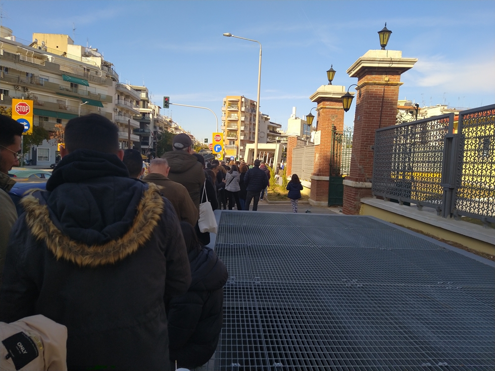 Ευτυχώς, η ουρά «προχωρούσε» σχετικά γρήγορα με τους εθελοντές του Open House Thessaloniki να είναι εξαιρετικά ευγενικοί και αποδοτικοί και μπόρεσε την πρώτη μέρα των ξεναγήσεων να μπει ένας μεγάλος αριθμός Θεσσαλονικέων.