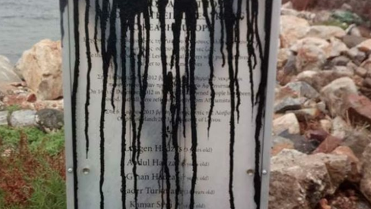‘Αγνωστοι βανδάλισαν περιχύνοντας το με μαύρη μπογιά, το μνημείο με ονόματα προσφύγων που έχασαν τη ζωή τους σε παλιότερα ναυάγια στη διετία 2012 – 2013, στην προσπάθεια τους να περάσουν από τις απέναντι μικρασιατικές ακτές στη Λέσβο. Το γεγονός καταδίκασε δημοσιοποιώντας το απόψε με ανακοίνωσή της η Κίνηση πολιτών «Συνύπαρξη και Επικοινωνία στο Αιγαίο». Σημειώνοντας πως «αναρωτιέται κανείς σε τι αποσκοπούσε, τι επεδίωκε ο δράστης ή οι δράστες, προσβάλλοντας την μνήμη των αδικοχαμένων αυτών ανθρώπων!». Στην ανακοίνωση τονίζεται ακόμα πως «αν μη τι άλλο ασέβησαν σε πανανθρώπινες αξίες και παραδόσεις, που πρώτοι οι πρόγονοι μας ανέδειξαν για τον σεβασμό των νεκρών, όποιοι κι αν είναι αυτοί. Συγγενείς ή άγνωστοι, ομόδοξοι ή ετερόδοξοι, εχθροί ή φίλοι. Στην τραγωδία του Σοφοκλή «Αντιγόνη» που αποτελεί παρακαταθήκη του ελληνικού πολιτισμού και διδάσκεται σε όλα τα σχολεία του κόσμου, κυρίαρχο στοιχείο είναι η απότιση τιμής στον νεκρό αδελφό -συνάνθρωπό μας».. Τέλος η Κίνηση πολιτών «Συνύπαρξη και Επικοινωνίας στο Αιγαίο» καλεί «όλους να αποδοκιμάσουν και να απομονώσουν τους δράστες».