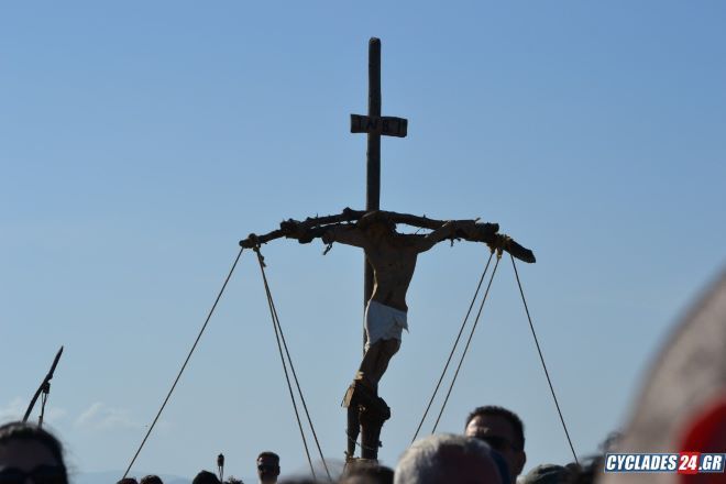 Πλήθος κόσμου παρακολούθησε και φέτος την ακολουθία της Μεγάλης Παρασκευής και την περιφορά του Επιταφίου μέσα στη θάλασσα, στην Αγία Γρηγορούσα, στο Καστράκι της Νάξου.