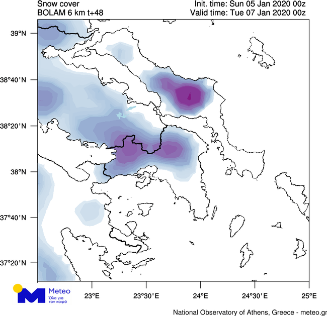 Χιονοπτώσεις στα βόρεια και δυτικά της Αττικής και χιόνι που θα εναλλάσσεται με χιονόνερο στην Αθήνα και στα κεντρικά του νομού, αναμένονται από τις βραδινές ώρες της Κυριακής 5/1. Βροχοπτώσεις που κατά περιόδους θα εναλλάσσονται με χιονόνερο θα σημειωθούν στα νότια του νομού. Στον χάρτη που ακολουθεί και παρουσιάζει τις περιοχές στις οποίες θα υπάρχει χιονόστρωση τη νύχτα της Δευτέρας 6/1 (Θεοφάνεια) προς Τρίτη 7/1, διακρίνεται ότι χιονοπτώσεις θα δεχτούν κατά κύριο λόγο τα βόρεια και δυτικά του νομού.