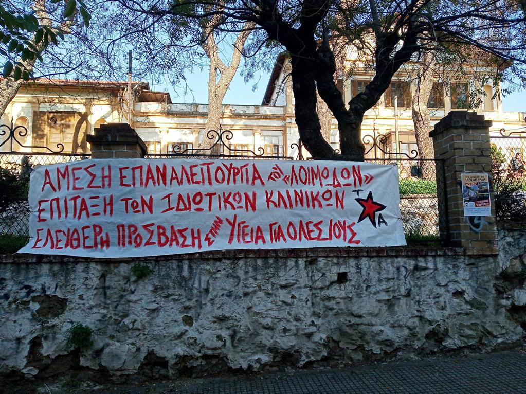 «Απαιτούμε να ανοίξει το νοσοκομείο «Λοιμωδών» τώρα, στελεχωμένο και εξοπλισμένο. Η κατάσταση στα νοσοκομεία της Θεσσαλονίκης δεν είναι πλέον διαχειρίσιμη. Οι Μονάδες Εντατικής Θεραπείας έχουν ξεπεράσει τα όρια της πληρότητας, άνθρωποι διασωληνώνονται σε ακατάλληλους χώρους (χειρουργεία, θαλάμους με φορητούς αναπνευστήρες), ασθενείς δεν μπορούν να αντιμετωπιστούν με τον ενδεδειγμένο τρόπο παρά τις υπεράνθρωπες προσπάθειες γιατρών και νοσηλευτών με συνέπεια να κινδυνεύουν συνεχώς ανθρώπινες ζωές.