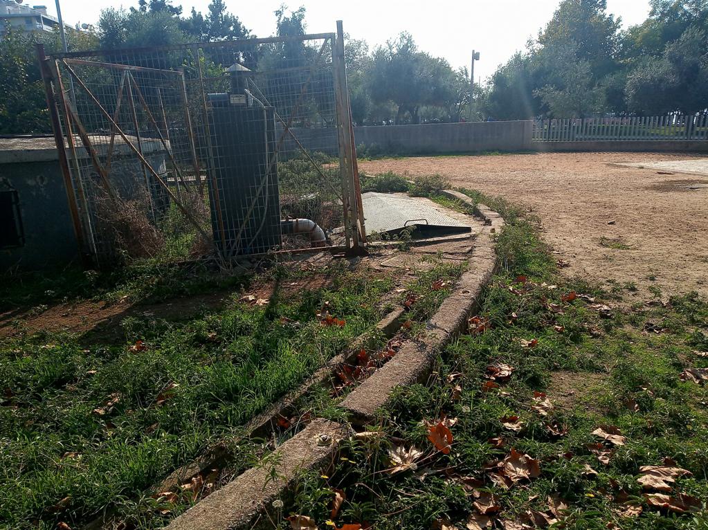 Περισσότερο θυμίζουν περιφραγμένα «ανοιχτά» κλουβιά, παρά πάρκα για σκύλους. Μάλιστα στο ένα εκ των δύο, στο κέντρο του υπάρχει και λειτουργεί ένα ολόκληρο αντλιοστάσιο, με ό,τι αυτό σημαίνει για την προστασία των ζώων.