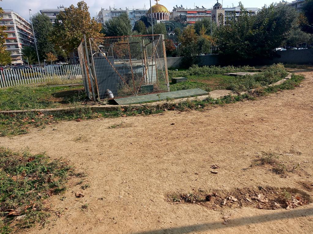 Ακόμα χειρότερη η κατάσταση στο δεύτερο πάρκο των σκύλων που βρίσκεται λίγο μετά το Μακεδονίας Παλλάς, με κατεύθυνση προς τα ανατολικά. Είναι πιο μικρό από το πρώτο, αλλά διαθέτει τις δικές του …υδραυλικές εγκαταστάσεις: στο μέσο ακριβώς του πάρκου των σκύλων έχει εγκατασταθεί ένα ολόκληρο αντλιοστάσιο Η εν λόγω κατασκευή αφενός καλύπτει μεγάλο μέρος του πάρκου και αφετέρου σε κάποια σημεία της είναι επικίνδυνη για την ακεραιότητα των τετράποδων.