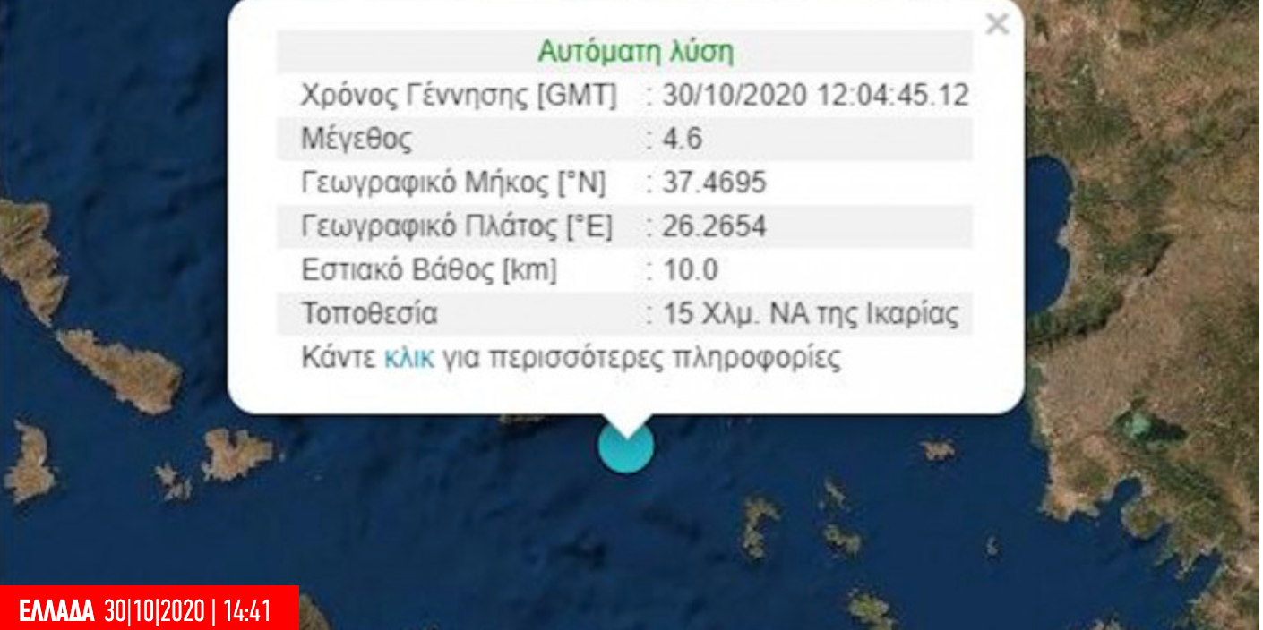 Νεα σεισμική δόνηση 4.6 Ρίχτερ Νοτιοανατολικά της Ικαρίας