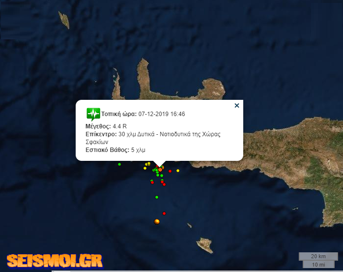 Ο σεισμός είχε εστιακό βάθος 5 χιλιομέτρων και το επίκεντρο εντοπίζεται 30 χιλιόμετρα Δυτικά- Νοτιοδυτικά της Χώρας Σφακίων.