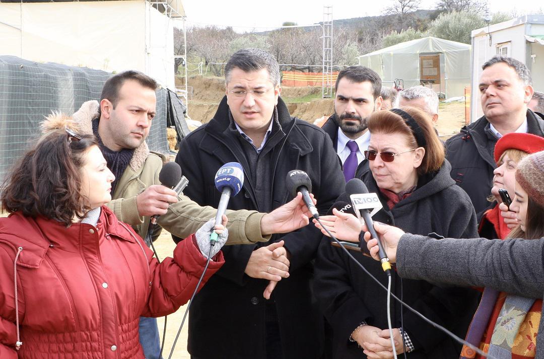 Νέες ανασκαφές στην ευρύτερη περιοχή της Αμφίπολης ανακοίνωσαν σήμερα από το μνημείο του Τύμβου Καστά ο Περιφερειάρχης Κεντρικής Μακεδονίας Απόστολος Τζιτζικώστας και η Υπουργός Πολιτισμού Λίνα Μενδώνη, μετά τη σύσκεψη που προηγήθηκε για την πορεία εξέλιξης των εργασιών στο μνημείο. Ο Περιφερειάρχης Κεντρικής Μακεδονίας Απόστολος Τζιτζικώστας και η Υπουργός Πολιτισμού Λίνα Μενδώνη επισκέφτηκαν σήμερα το μνημείο του Τύμβου Καστά στην Αμφίπολη και επιθεώρησαν τις εργασίες που εξελίσσονται για την αποκατάσταση και ανάδειξη του μνημείου, ενώ πραγματοποίησαν σύσκεψη με τις αρμόδιες υπηρεσίες του Υπουργείου.