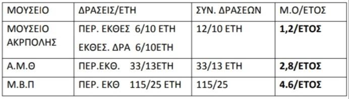 Το Μουσείο Ακρόπολης στις δράσεις εξωστρέφειας έχει πραγματοποιήσει τις λιγότερες σε σχέση με το ΑΜΘ και ΜΒΠ.