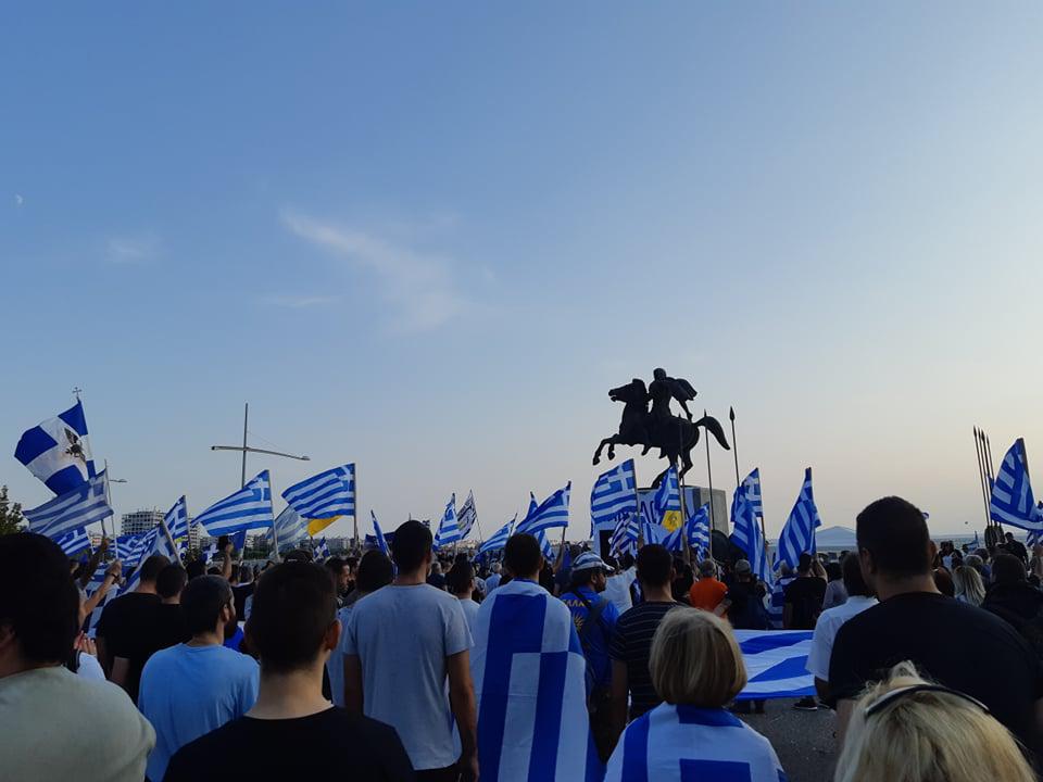 Σε εξέλιξη βρίσκεται η συγκέντρωση για τη Μακεδονία στο Άγαλμα Μεγάλου Αλεξάνδρου.