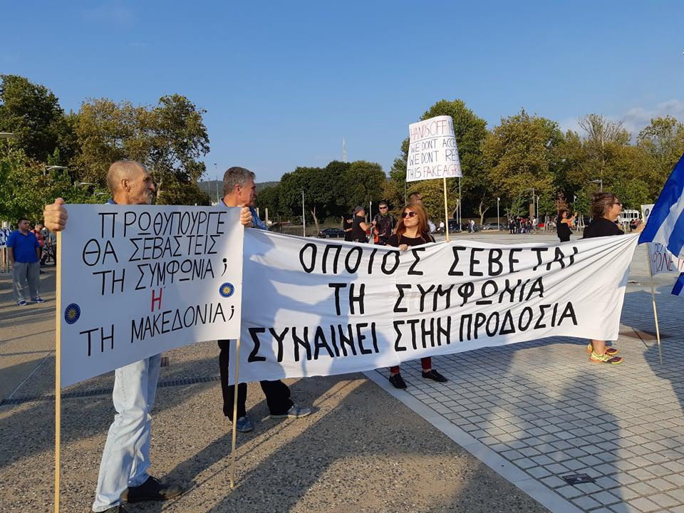 Ακούγονται συνθήματα που αναφέρονται στη Συμφωνία των Πρεσπών ως προδοτική. Επίσης, κράτησαν ενός λεπτού σιγή για τον Κατσίφα.