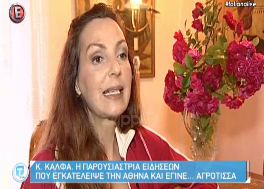 Νεκρή εντοπίστηκε σήμερα, 50χρονη γυναίκα, κατά τη διάρκεια κατάσβεσης πυρκαγιάς που εκδηλώθηκε σε μονοκατοικία, σήμερα το πρωί, στα Γλυκά Νερά Νέας Ποτίδαιας, στη Χαλκιδική. Πρόκειται για τη δημοσιογράφο Καρολίνα Κάλφα που είχε εργαστεί για χρόνια σε τηλεοπτικούς σταθμούς της Αθήνας και τα τελευταία χρόνια ζούσε στην Χαλκιδική.