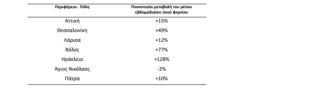 Παράρτημα 2: ΕΘΝΙΚΟ ΔΙΚΤΥΟ ΕΠΙΔΗΜΙΟΛΟΓΙΑΣ ΛΥΜΑΤΩΝ ΕΟΔΥ Ανακοινώνονται τα αποτελέσματα των εργαστηριακών ελέγχων του Εθνικού Δικτύου Επιδημιολογίας Λυμάτων για την επιδημιολογική επιτήρηση του ιού SARS-CoV-2 σε αστικά λύματα που αφορούν την περίοδο από 1 έως 7 Μαρτίου 2021. Τα δείγματα προέρχονται από την Περιφέρεια Αττικής και τις πόλεις της Θεσσαλονίκης, της Λάρισας, του Βόλου, του Ηρακλείου, του Αγίου Νικολάου και της Πάτρας. Τα δείγματα λαμβάνονται από τις εισόδους των εκάστοτε Μονάδων Επεξεργασίας Λυμάτων και αντιστοιχούν στον πληθυσμό που εξυπηρετείται από αυτές. Πίνακας 1: Ποσοστιαία μεταβολή στη μέση εβδομαδιαία συγκέντρωση του ιϊκού φορτίου του SARS-CoV-2 στα αστικά λύματα ανά 100.000 κατοίκους την εβδομάδα 1-7 Μαρτίου 2021 σε σχέση με την εβδομάδα 22-28 Φεβρουαρίου 2021.