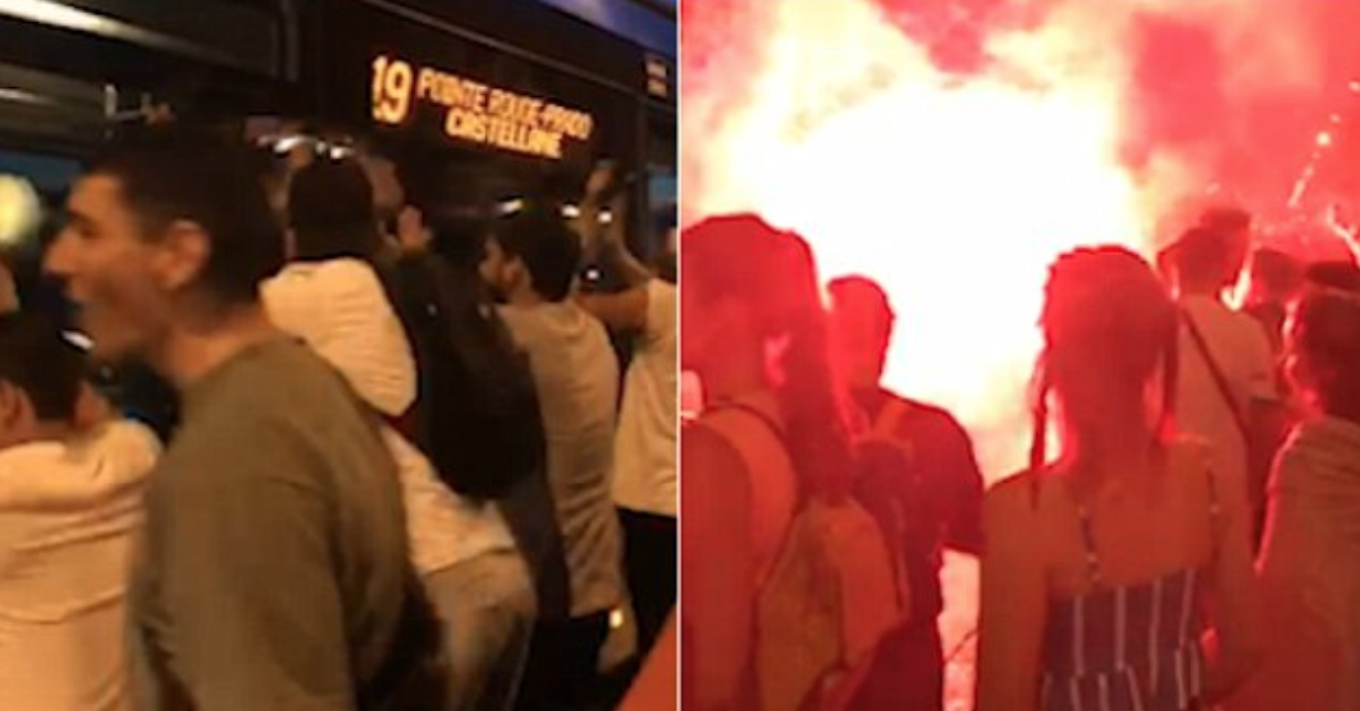 Σχεδόν 30 ποδοσφαιρόφιλοι τραυματίστηκαν στη Νίκαια όταν ερρίφθησαν πυροτεχνήματα λίγο πριν από τη λήξη του νικηφόρου αγώνα της γαλλικής εθνικής ομάδας στο παγκόσμιο πρωτάθλημα και την πρόκρισή της στον τελικό, με αποτέλεσμα να προκληθεί πανικός και πολλοί άνθρωποι να ποδοπατηθούν.
