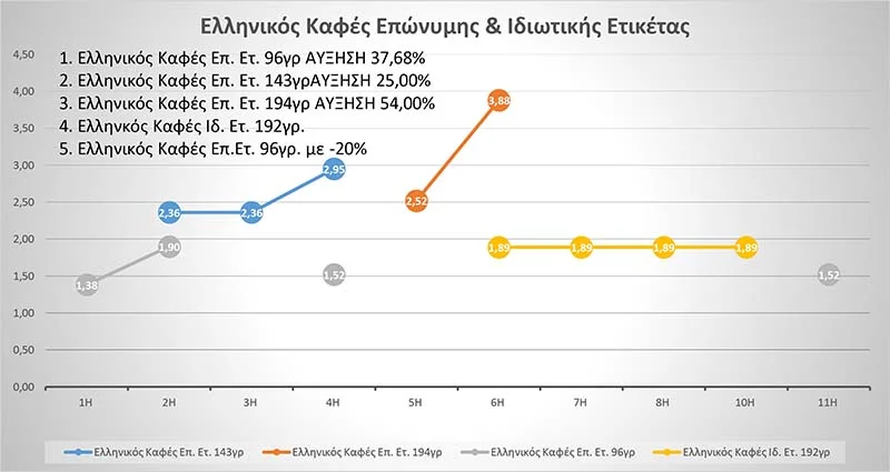 3.Ελληνικός καφές επώνυμης ετικέτας 194 γρ.: Αύξηση 54%