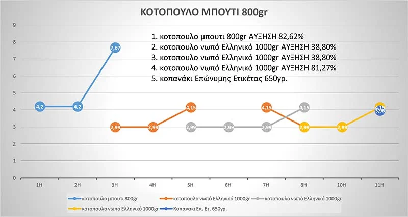 1.Κοτόπουλο μπούτι 800 γρ.: Αύξηση 82,62%