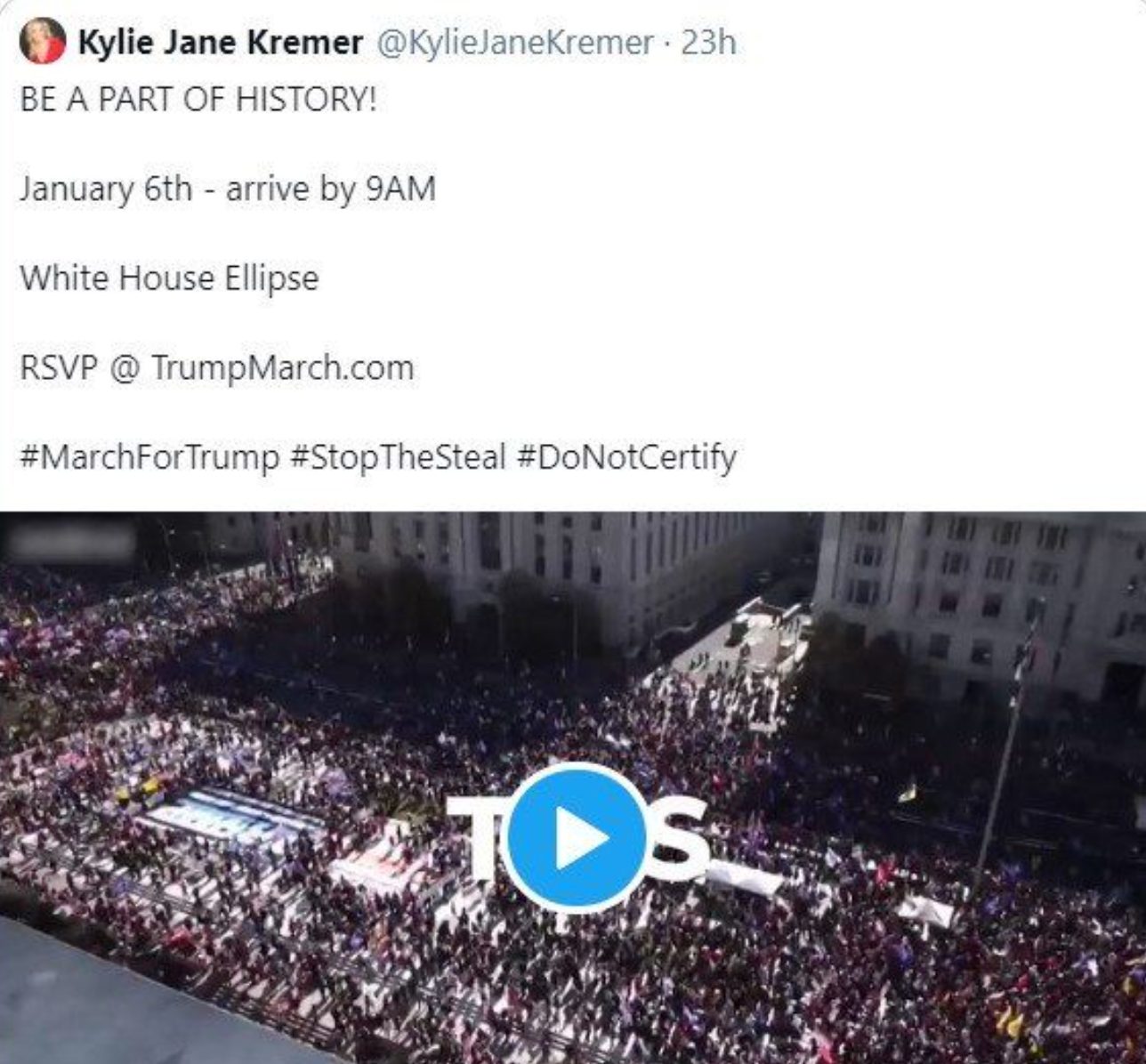 Η εξέγερση τροφοδοτείται από ομάδες συνωμοσίας, εξτρεμιστές και περιθωριακά κινήματα. «Ήταν να χτίσουμε την ορμή και την πίεση και να αλλάξουμε τις καρδιές και τα μυαλά του Κογκρέσου σε όσους δεν είχαν ακόμη αποφασίσει ή σε όσου είδαν όλους εκει έξω και είπε,« Δεν μπορώ να είμαι στην άλλη πλευρά αυτού του όχλου ». αν και όπως ειπε δεν ζήτησε βία.