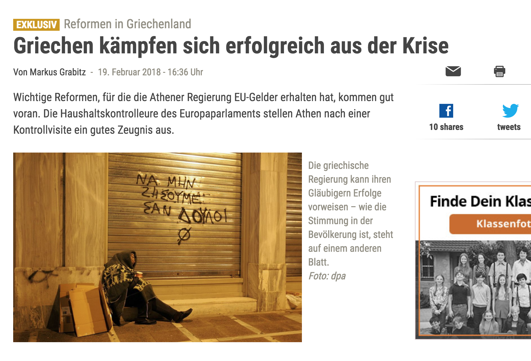 Οι ελεγκτές της Επιτροπής Προϋπολογισμού του ευρωκοινοβουλίου αξιολογούν θετικά τις ελληνικές προσπάθειες μετά από ελέγχους στην Αθήνα», σημειώνει η Stuttgarter Zeitung.