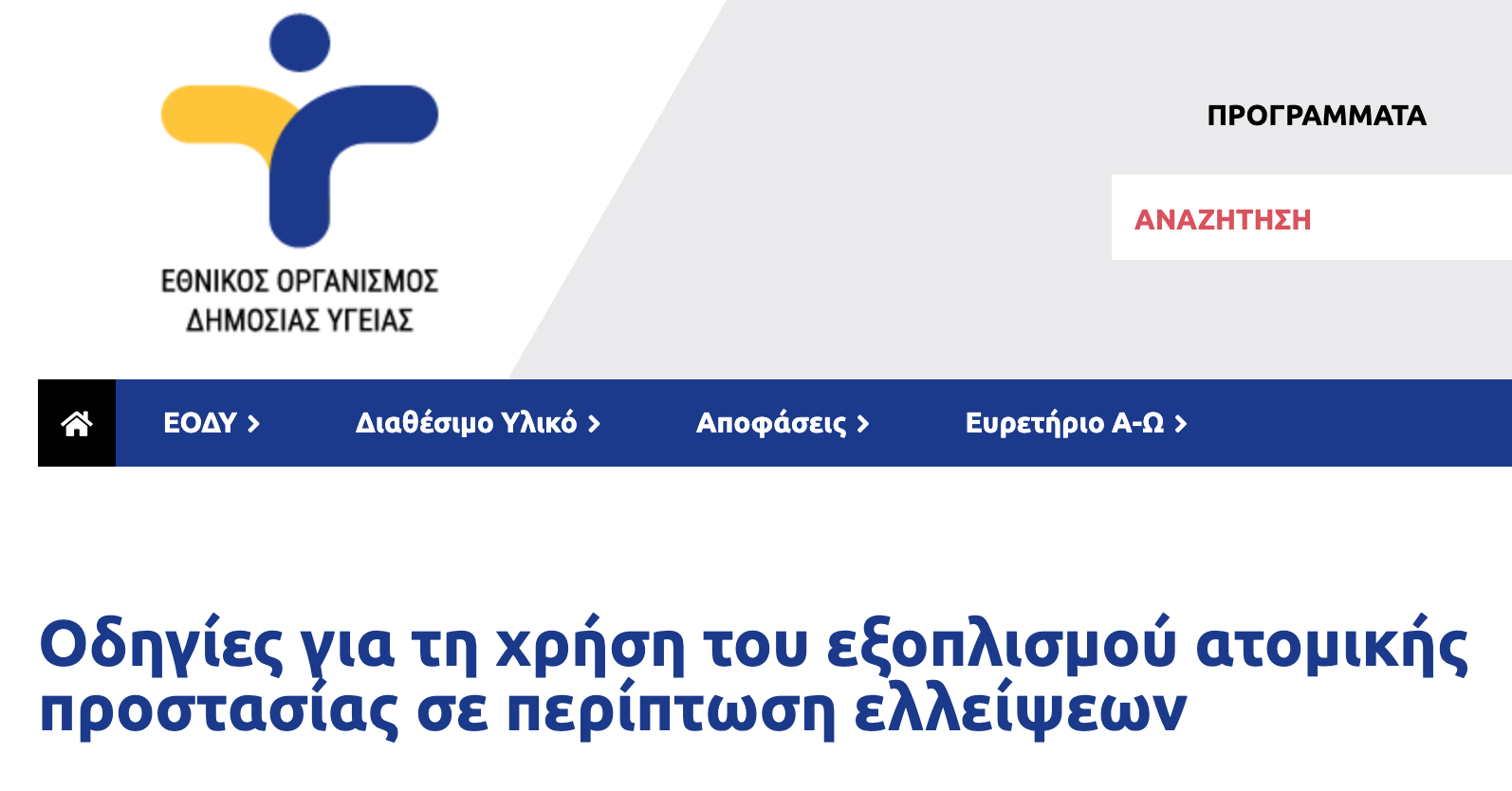 Οδηγίες για τη χρήση του εξοπλισμού ατομικής προστασίας σε περίπτωση ελλείψεων