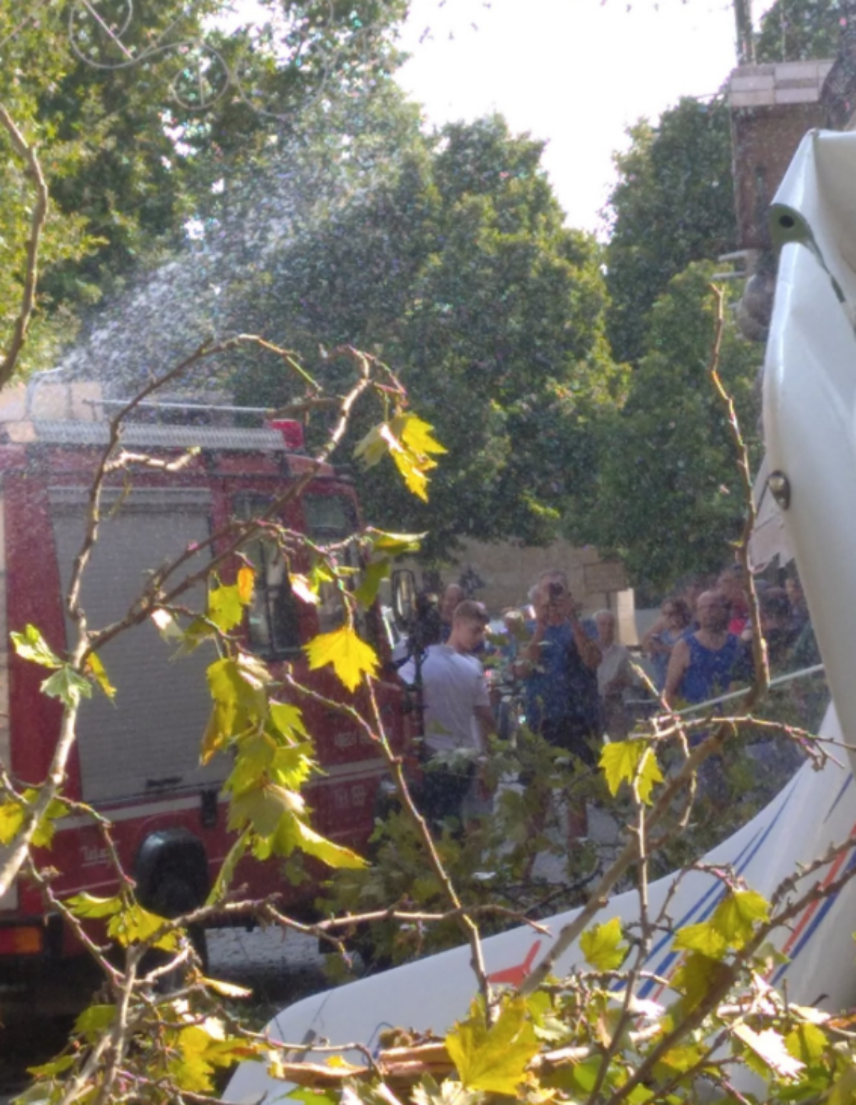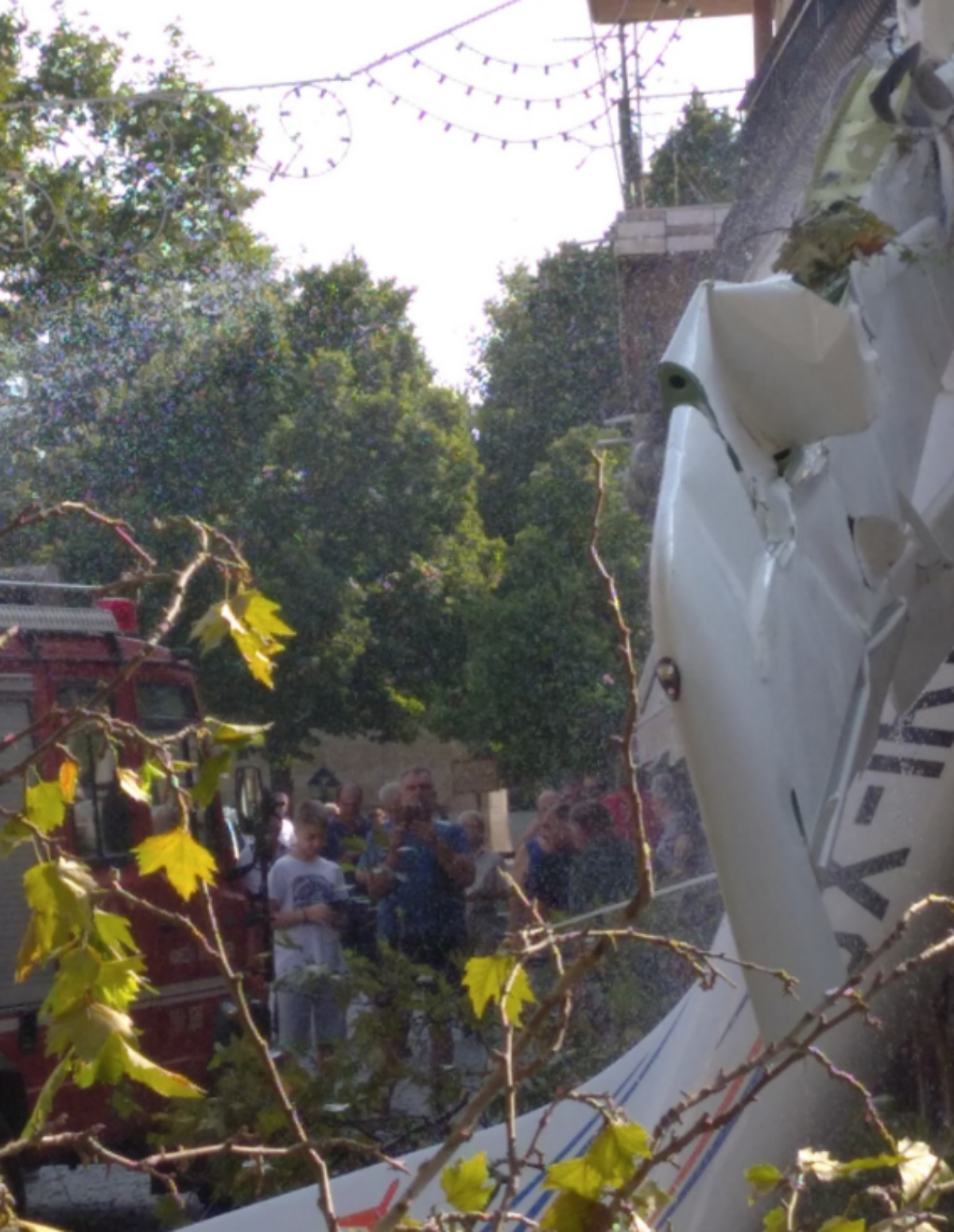 Η αστυνομία έχει αποκλείσει την περιοχή του ατυχήματος και πυροσβεστικά οχήματα βρίσκονται ήδη εκεί για το ενδεχόμενο εκδήλωσης πυρκαγιάς στο μικρό αεροσκάφος.