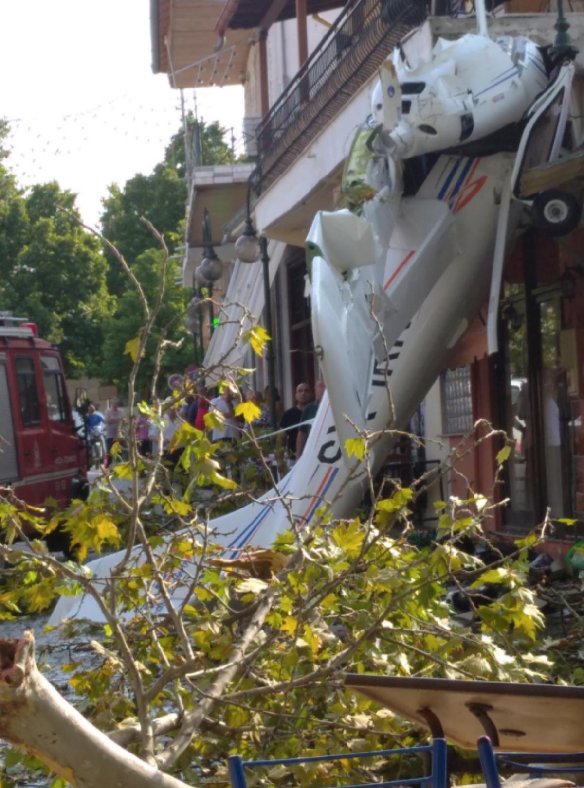 Από καθαρή τύχη δεν υπήρξαν σοβαρές συνέπειες από την πτώση του αεροπλάνου σε πρόσοψη σπιτιού μέσα στο χωριό