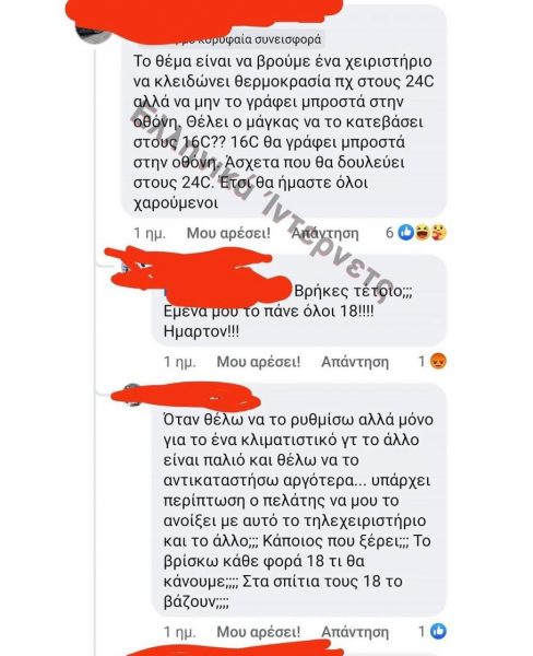 Όπως είναι αναμενόμενο, στα σχόλια κάτω από τον διάλογο (του οποίου ωστόσο η προέλευση δε διασταυρώνεται), γίνεται πάρτυ: «Εάν δεν τους αρέσει ας τα νοικιάσουν μακροχρόνια. Αυτό που θέλουνε τζίρο βραχυχρονιας αλλά κόστη μακροχρόνιας με ξεπερνά», γράφει χρήστης του Facebook. «Βάλτε έναν ρυθμιστή τάσης / έντασης στην τροφοδοσία. Να δουλεύει το κλιματιστικό σαν ψόφιο. Επίσης με έναν κάβουρα «πνίξτε» τους σωλήνες, να μην τρέχει πολύ νερό», προτρέπει άλλος, ειρωνικά.