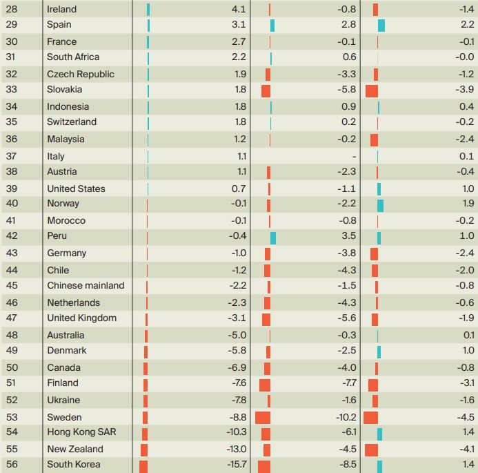 Η μεγαλύτερη μείωση τιμών καταγράφεται στη Ν. Κορέα (-15,7%), τη Νέα Ζηλανδία (-13%), το Χονγκ Κονγκ (-10,3%) και τη Σουηδία (-8,8%).