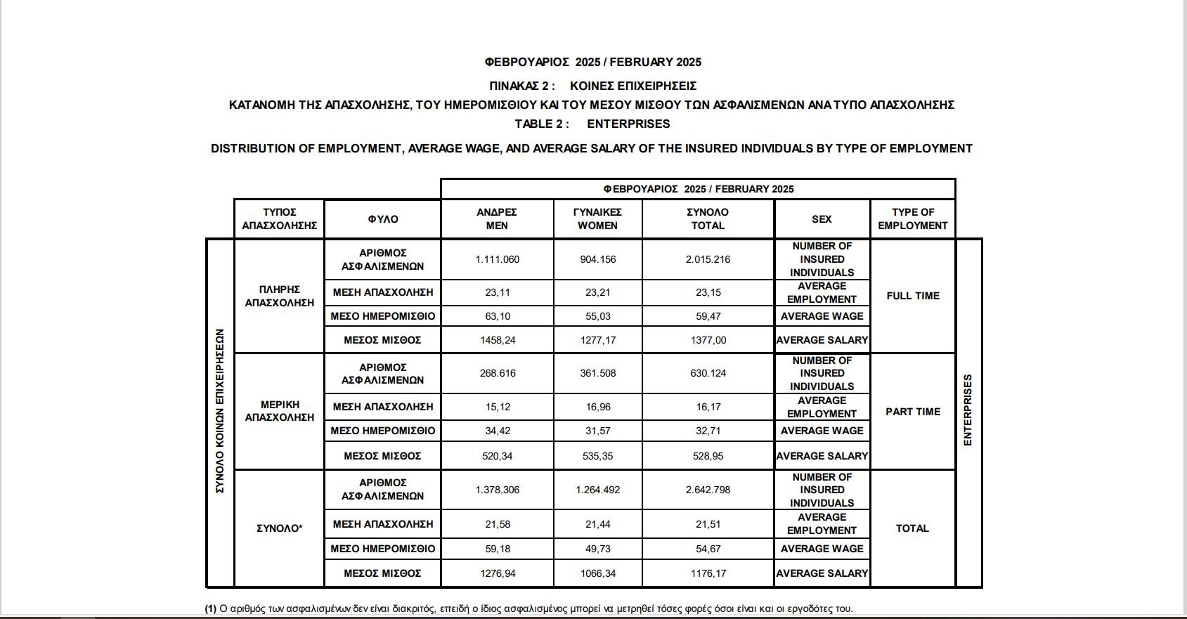 Τα στοιχεία αναρτήθηκαν πρόσφατα και αφορούν τον Φεβρουάριο του 2025.