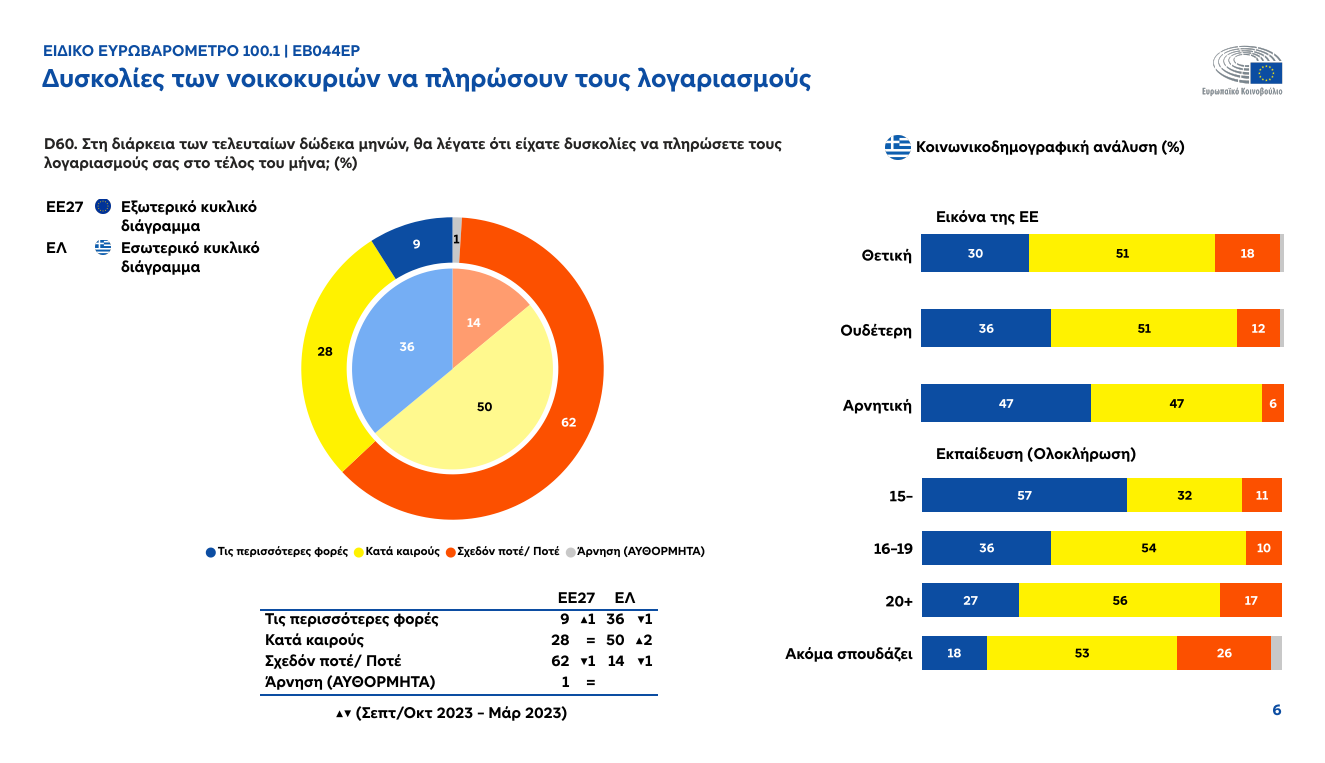 Ευρωβαρόμετρο: 8 στους 10 Έλληνες δεν μπορούν να πληρώσουν τους λογαριασμούς