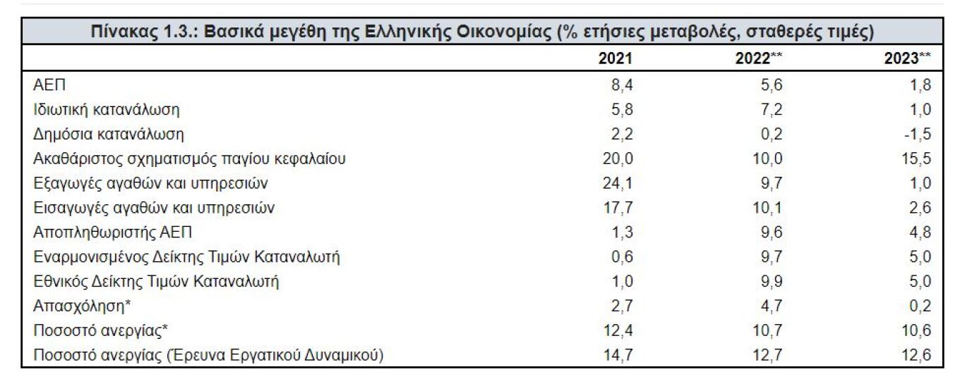 Ειδικότερα, σε ό,τι αφορά τα μέτρα στήριξης το σύνολο των ενεργειακών παρεμβάσεων για φέτος εκτιμάται σε περίπου 10,7 δισ. ευρώ το 2022, εκ των οποίων 4,8 δισ. ευρώ (2,3% του ΑΕΠ) επηρεάζουν το δημοσιονομικό αποτέλεσμα και 5,9 δισ. ευρώ χρηματοδοτείται από τα επιπλέον έσοδα του Ταμείου Ενεργειακής Μετάβασης.