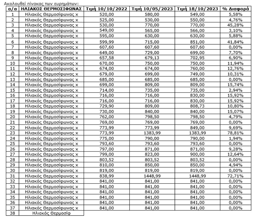 Η Ένωση Εργαζομένων Καταναλωτών Ελλάδας, πραγματοποίησε δειγματοληπτική Έρευνα, χρησιμοποιώντας δείγμα εξήντα (60) προϊόντων και πενήντα έξι (56) διαφορετικών ηλεκτρονικών καταστημάτων, με σκοπό να διαπιστωθεί εάν μετά την έναρξη της επιδότησης των ηλιακών θερμοσιφώνων θα εντοπιστούν αυξήσεις στις τιμές των προϊόντων.