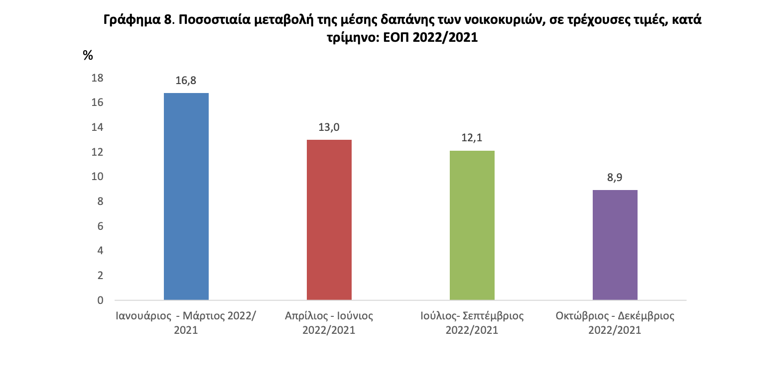 Στο Γράφημα 8 παρουσιάζεται η ποσοστιαία μεταβολή των μηνιαίων δαπανών των νοικοκυριών για