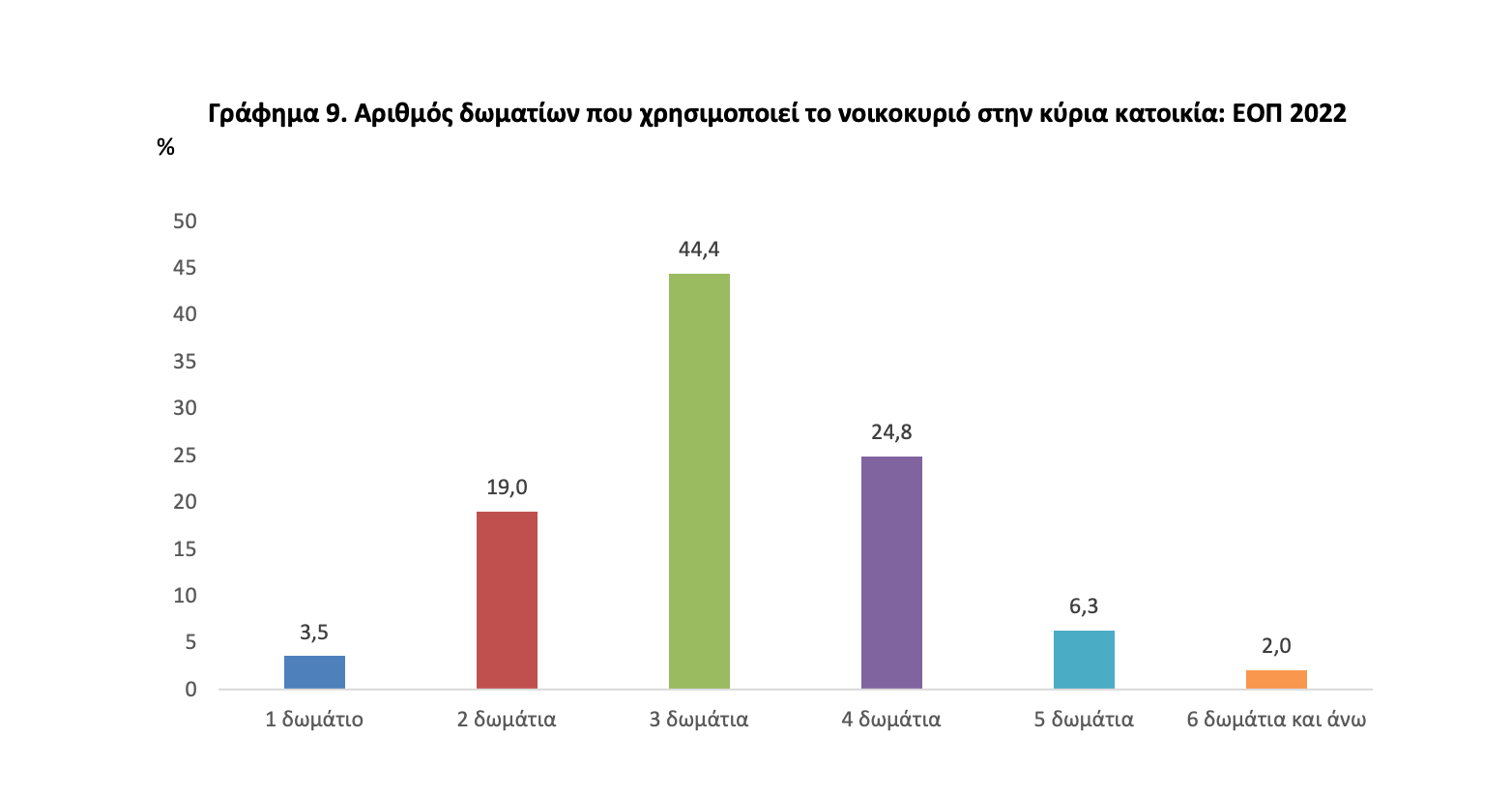 Γράφημα 9. Αριθμός δωματίων που χρησιμοποιεί το νοικοκυριό στην κύρια κατοικία: ΕΟΠ 2022