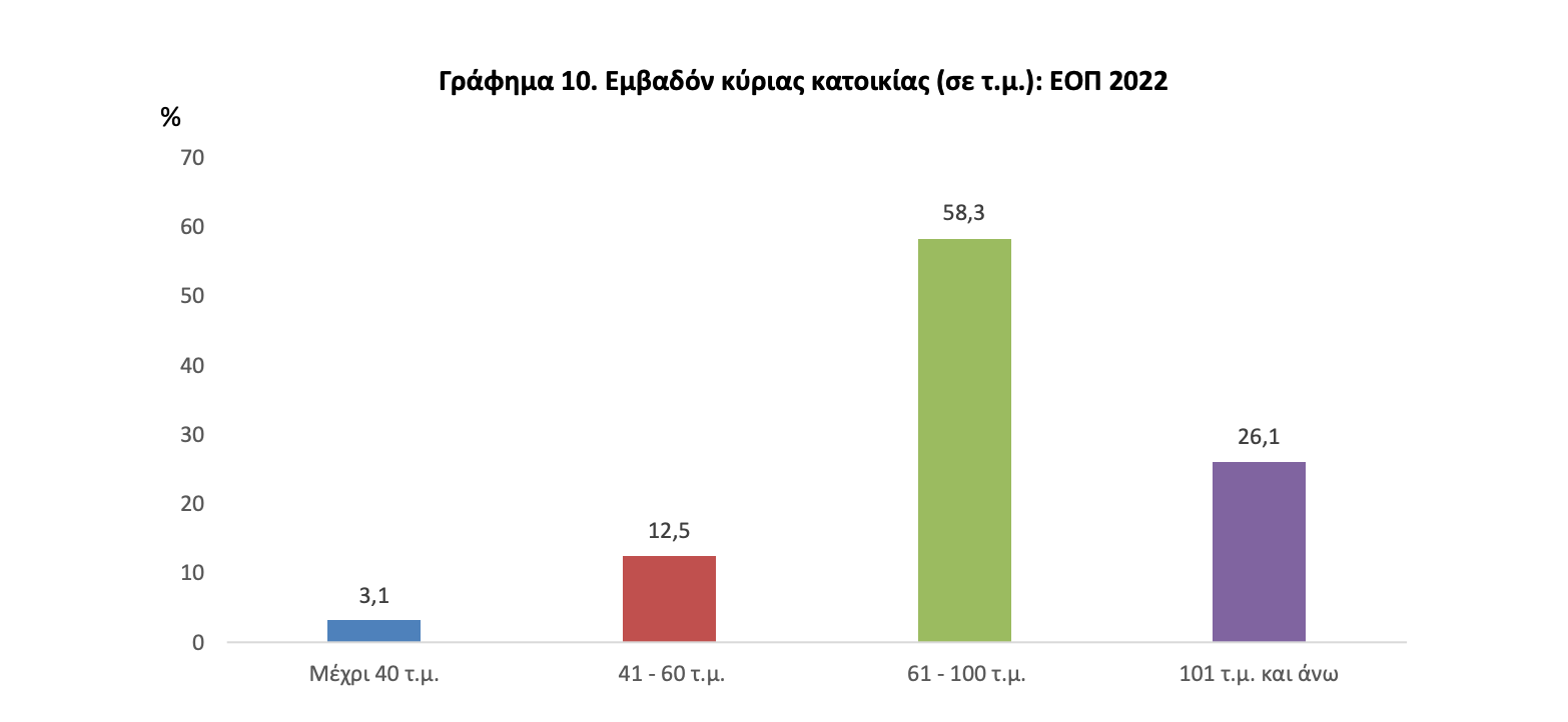 Γράφημα 10. Εμβαδόν κύριας κατοικίας (σε τ.μ.): ΕΟΠ 2022