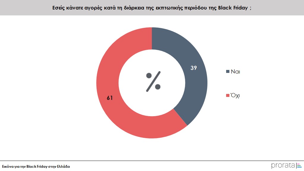 Η εταιρεία Prorata, θέλοντας να εντοπίσει τη διείσδυση της Black Friday στην ελληνική κοινωνία, πραγματοποίησε την τελευταία της μεγάλη πανελλαδική έρευνα για το 2025, παρουσιάζοντας τις αντιλήψεις των Ελλήνων, καταγράφοντας τη συμμετοχή τους και ρίχνοντας βάρος σε πτυχές του καταναλωτικού θεσμού για πρώτη φορά.