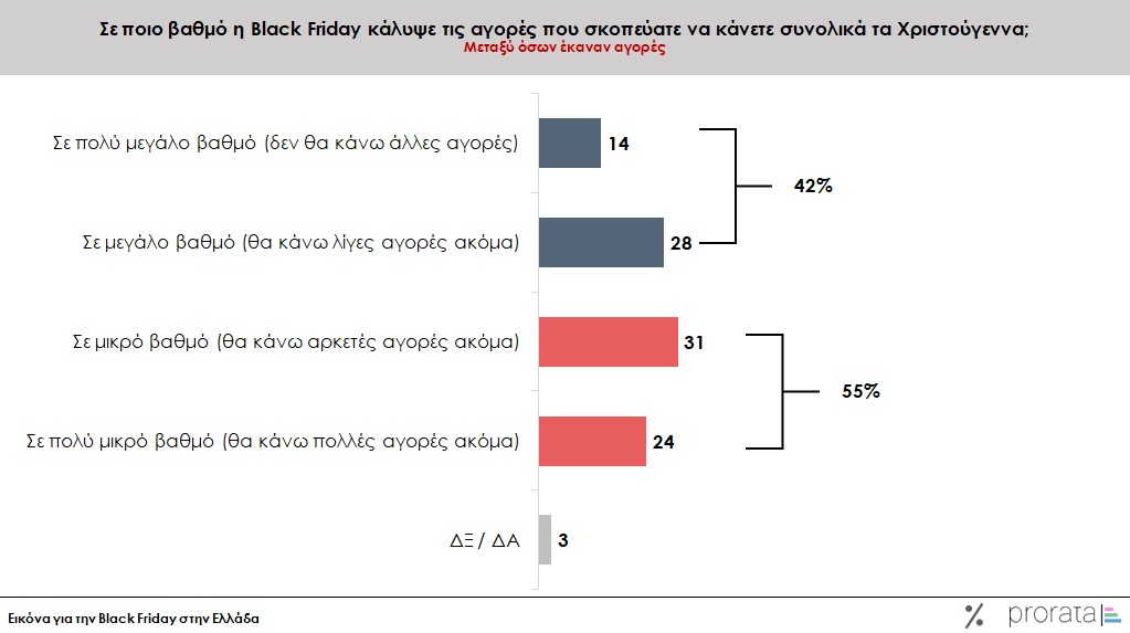 Μόλις το 42% από όσες/ους ψώνισαν κάλυψε τις ανάγκες του, με ένα 55% να δηλώνει ότι θα κάνει αγορές και στα Χριστούγεννα.