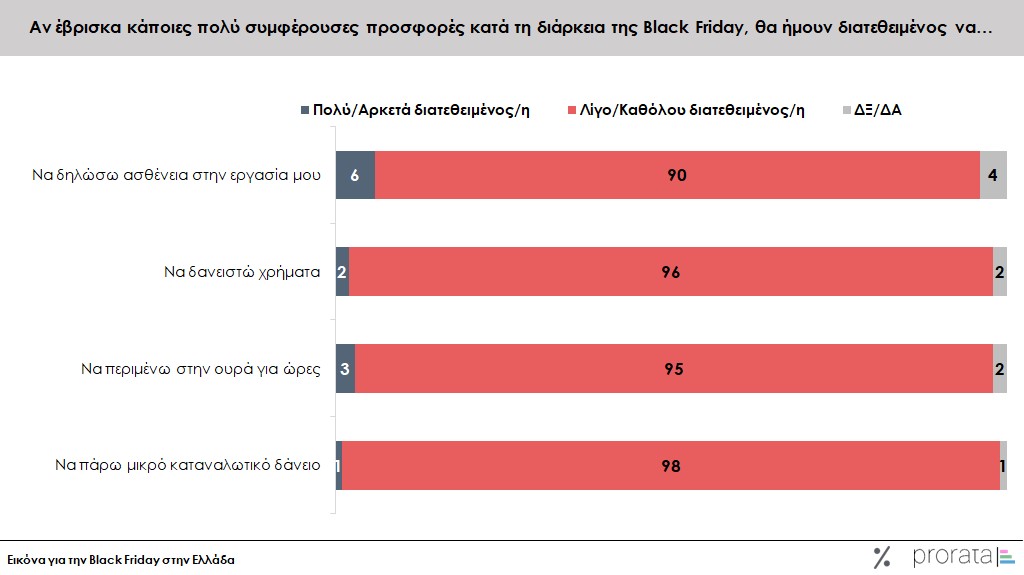 Ένα μικρό ποσοστό, 12%, θα ήταν διατεθειμένο να προβεί σε διάφορες ενέργειες -όπως η ψευδής δήλωση ασθένειας στην εργασία του– προκειμένου να αγοράσει στη Black Friday.