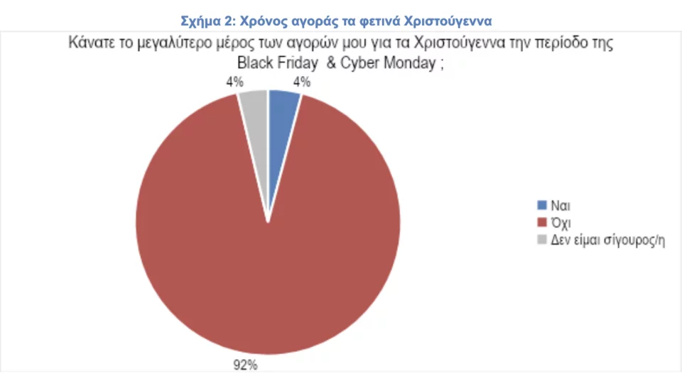 Ένα μικρό μερίδιο αυτών των αγορών αφορούν τις αγορές των Χριστουγέννων. Συγκεκριμένα από το 26% το οποίο πραγματοποίησε αγορές την περίοδο του Black Friday το 4%, δηλαδή περίπου 1 στους 6, έκανε το μεγαλύτερο μέρος των αγορών του για τα Χριστούγεννα την περίοδο του Black Friday.