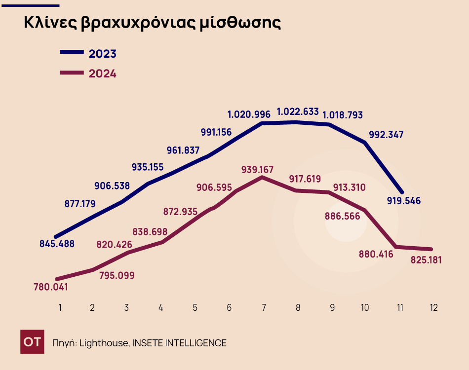 Τέλος, τον Νοέμβριο του 2024, ο αριθμός των κλινών μειώθηκε περαιτέρω στις 920 χιλ., παραμένοντας εκ νέου υψηλότερος κατά 90 χιλ. σε σύγκριση με τον Νοέμβριο του 2023, όταν είχαν καταγραφεί 830 χιλ. κλίνες.