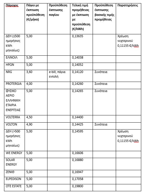 Επισημαίνεται χαρακτηριστικά πως σύμφωνα με τις τιμές που ανακοίνωσε ο μεγαλύτερος πάροχος της χώρας, στο ειδικό πράσινο τιμολόγιο η τελική τιμή χρέωσης για κατανάλωση κάτω των 500 kWh διαμορφώνεται σε 0,13635 ευρώ/kWh, όταν στο αντίστοιχο τιμολόγιο τον Δεκέμβριο του 2023 οι τιμές διαμορφώνονταν σε 0,145 ευρώ/kWh με επιδότηση και σε 0,17 ευρώ/kWh χωρίς την επιδότηση. Είναι, δηλαδή, πιο οικονομικό το πράσινο τιμολόγιο κατά 0,0336 ευρώ αν συγκριθεί με την τιμή προ επιδότησης και κατά 0,00865 ευρώ σε σχέση με την τιμή μετά επιδότησης.