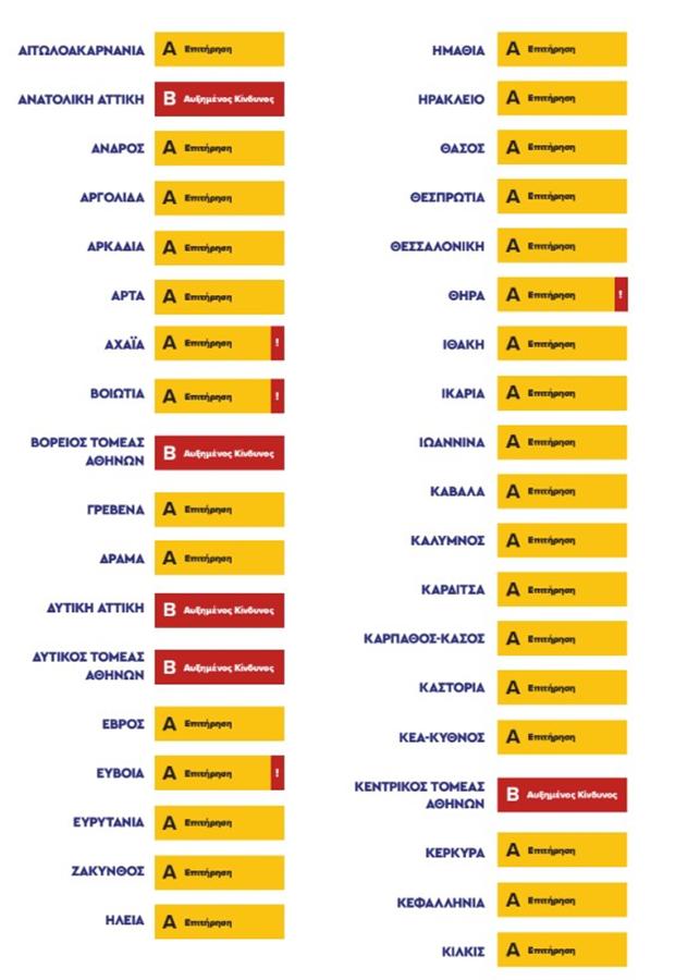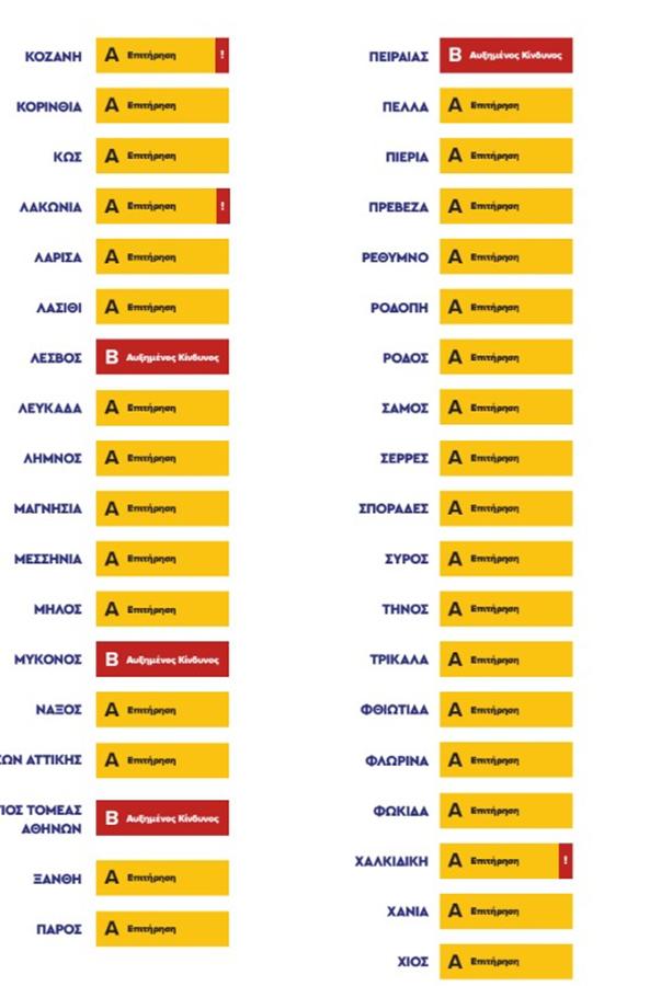 Ο λόγος για το επίπεδο επιτήρησης «κίτρινο» και αυξημένου κινδύνου «κόκκινο».
