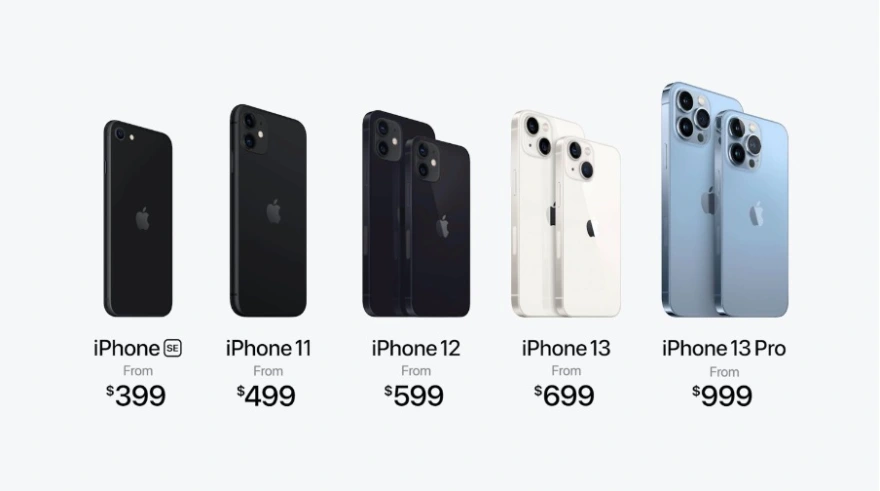Στις ΗΠΑ τα νέα iPhone διατίθενται από 699 δολ. για το iPhone 13 Mini και iPhone 13 και από 999 δολ. για το iPhone 13 Pro. Παράλληλα, στην αγορά διατηρούνται επίσημα από την Apple τα προηγούμενα μοντέλα iPhone SE, iPhone 11 και iPhone 12, σε τιμές από 399, 499 και 599 δολ. αντιστοίχως.
