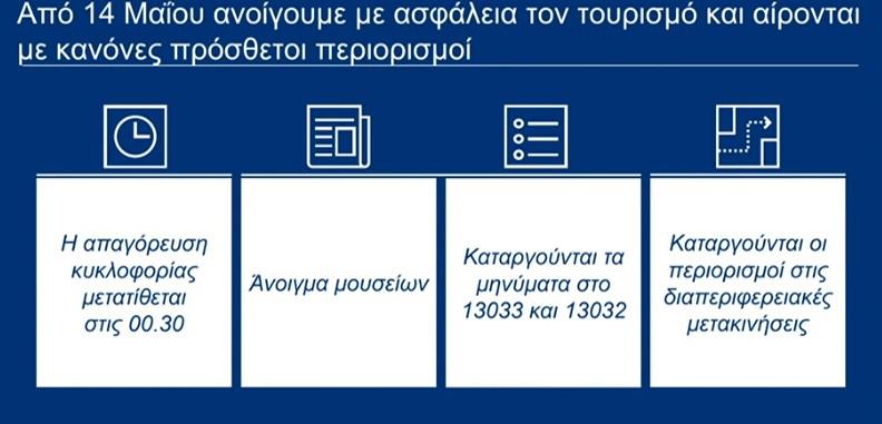 Επίσης, η νυχτερινή απαγόρευση μεταφέρεται για τις 00:30 και ανοίγουν τα μουσεία.