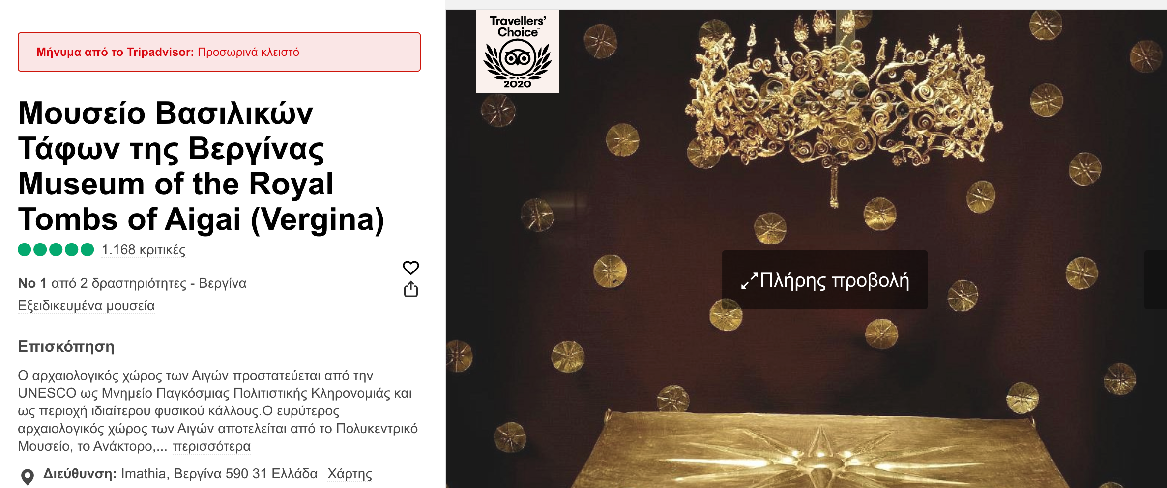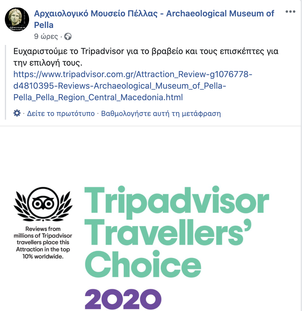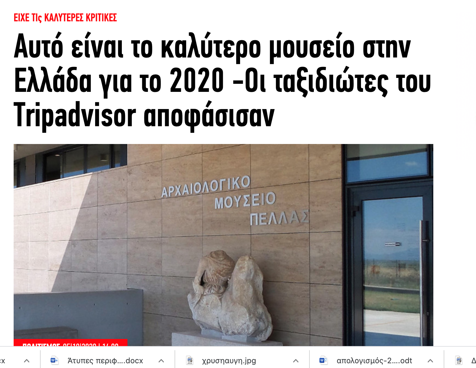 Τι μαθαίνουμε λοιπόν εδώ; Ότι το Μουσείο της Πέλλας είναι το καλύτερο ελληνικό μουσείο για το 2020 στη συγκεκριμένη λίστα του Trip Advisor. Ισχύει; Φυσικά και όχι.