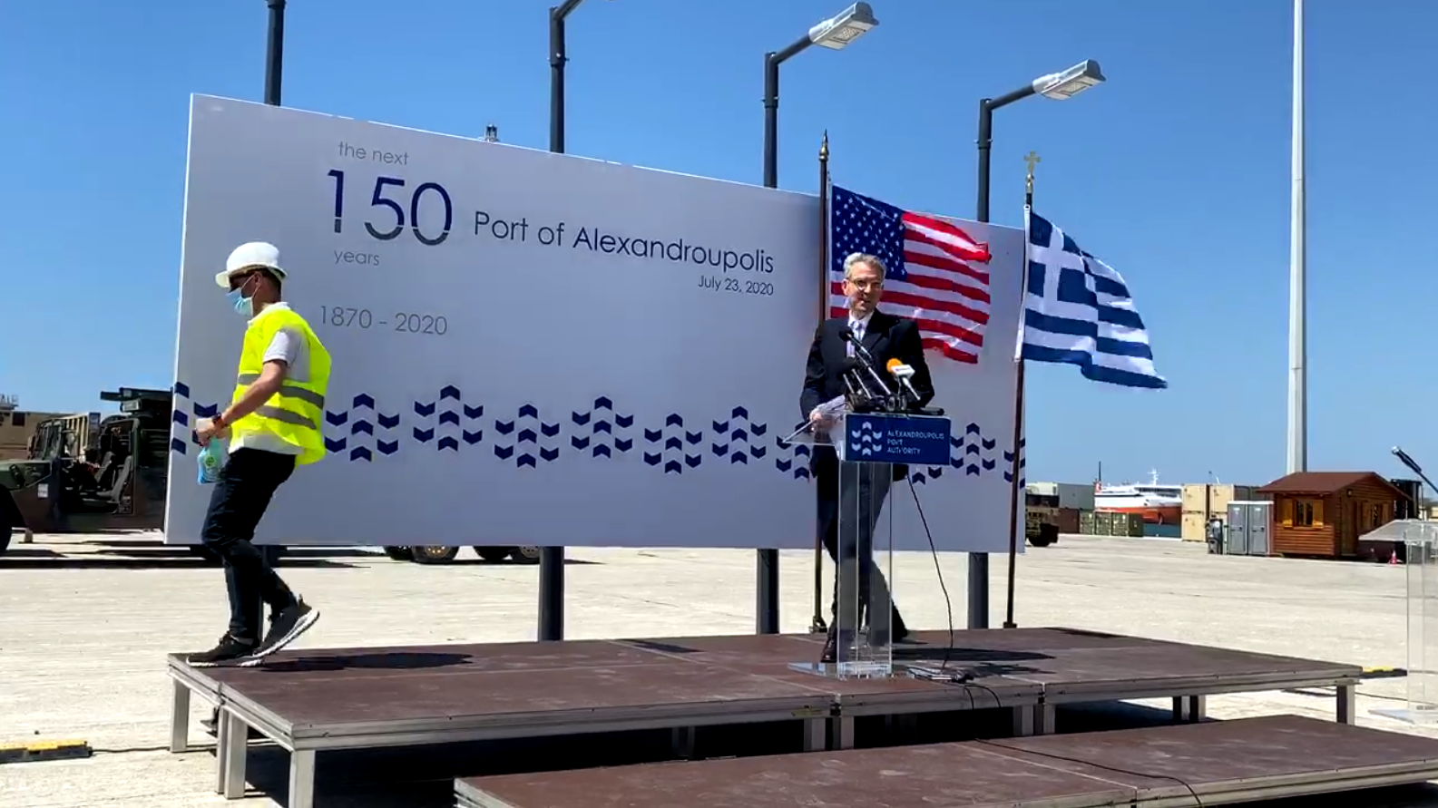 Κεντρικό σημείο των κοινών διμερών στόχων η Αλεξανδρούπολη Ο Αμερικανός πρέσβης υπογράμμισε ακόμη τον ρόλο της Αλεξανδρούπολης στην ανάπτυξη των κοινών στόχων ΗΠΑ και Ελλάδας σε ό,τι αφορά την ενίσχυση της ευρωπαϊκής ενεργειακής ασφάλειας και της περιφερειακής σταθερότητας. “Η Ελλάδα και οι Ηνωμένες Πολιτείες επέλεξαν να συνεργαστούν στενά σε αυτό το τμήμα της ελληνικής επικράτειας για την ενίσχυση της ικανότητάς μας να παρέχουμε ασφάλεια, οικονομική ανάπτυξη και ανάπτυξη των ενεργειακών και λιμενικών υποδομών”, τόνισε.