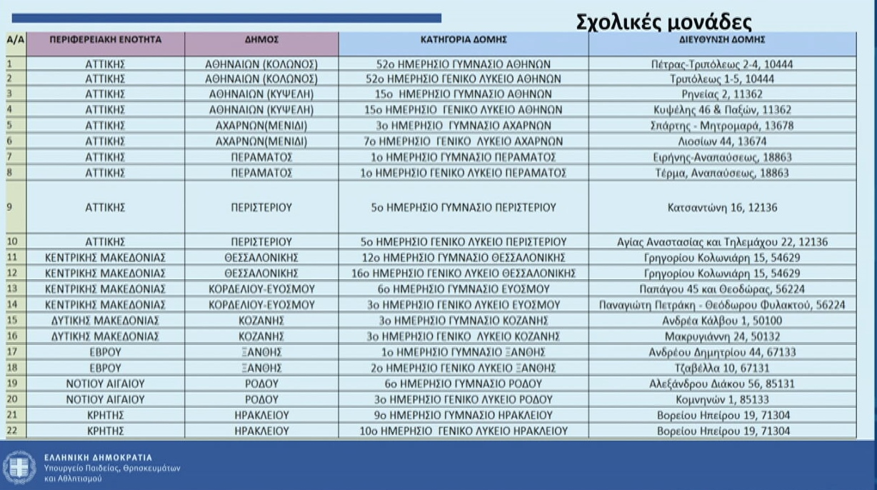 Αυτά είναι τα 22 Δημόσια Ωνάσεια Σχολεία – Τα τέσσερα στη Θεσσαλονίκη