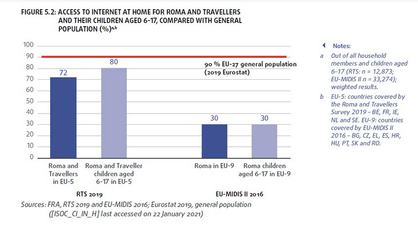 Όσον αφορά στην εκπαίδευση, η έκθεση υπογραμμίζει την ανησυχητική κατάσταση του εκπαιδευτικού διαχωρισμού των παιδιών Ρομά, υποστηρίζοντας την ανάγκη για περαιτέρω μέτρα για την προώθηση της εκπαιδευτικής ένταξης και τονίζοντας τον σαφή κίνδυνο που ενέχει το ψηφιακό χάσμα για τα παιδιά Ρομά.