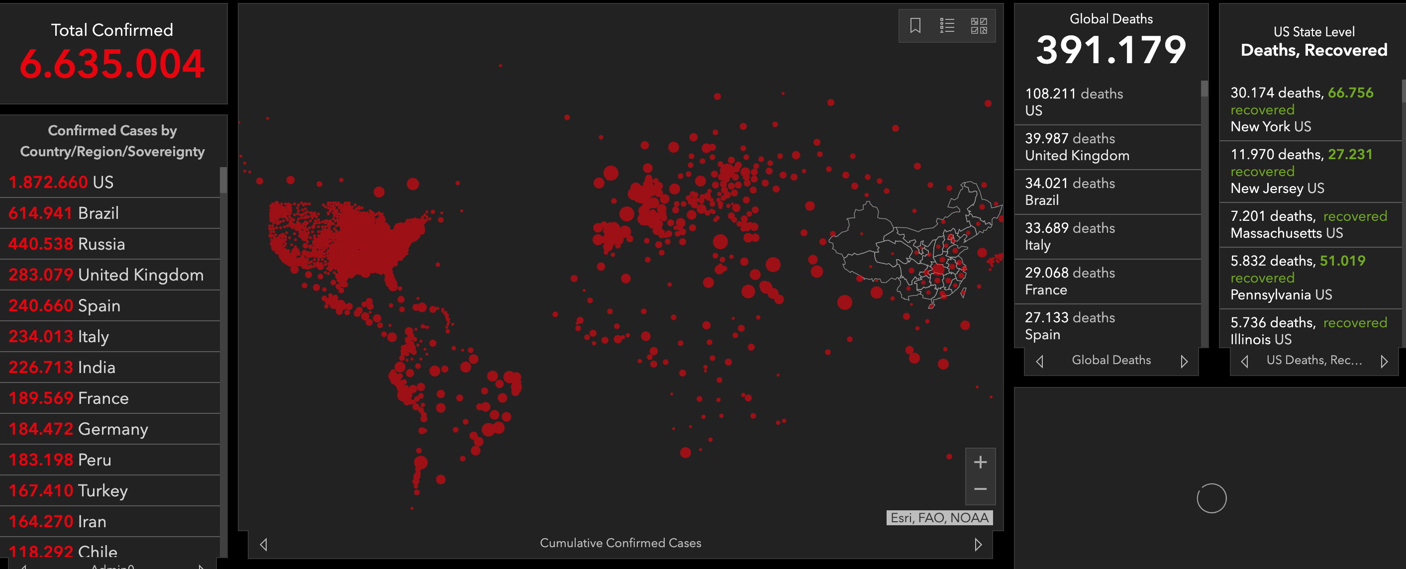 Περισσότεροι από 6.635.004 άνθρωποι έχουν διαγνωστεί με κορονοϊό επίσημα σε 196 χώρες και εδάφη από την έναρξη της επιδημίας, από τους οποίους τουλάχιστον 2.838.800 θεωρούνται θεραπευμένοι.