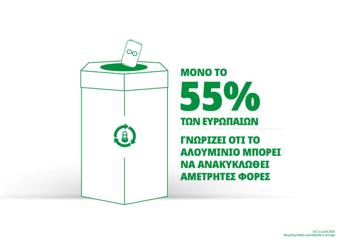Αυτά, σύμφωνα με έρευνα για τις συνήθειες ανακύκλωσης που πραγματοποιήθηκε σε 14 χώρες από τη βρετανική εταιρεία δημοσκοπήσεων Lucid για λογαριασμό του προγράμματος Κάθε Κουτί Μετράει, που ευαισθητοποιεί το κοινό σχετικά με τα οφέλη της ανακύκλωσης κουτιών αλουμινίου και της κυκλικής οικονομίας.