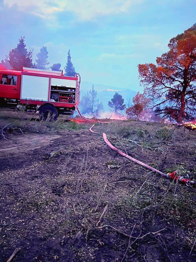 Στο σημείο επιχειρούν όλη την ημέρα πυροσβεστικές δυνάμεις, αφού υπήρξαν αναζωπυρώσεις σε διάφορες εστίες.