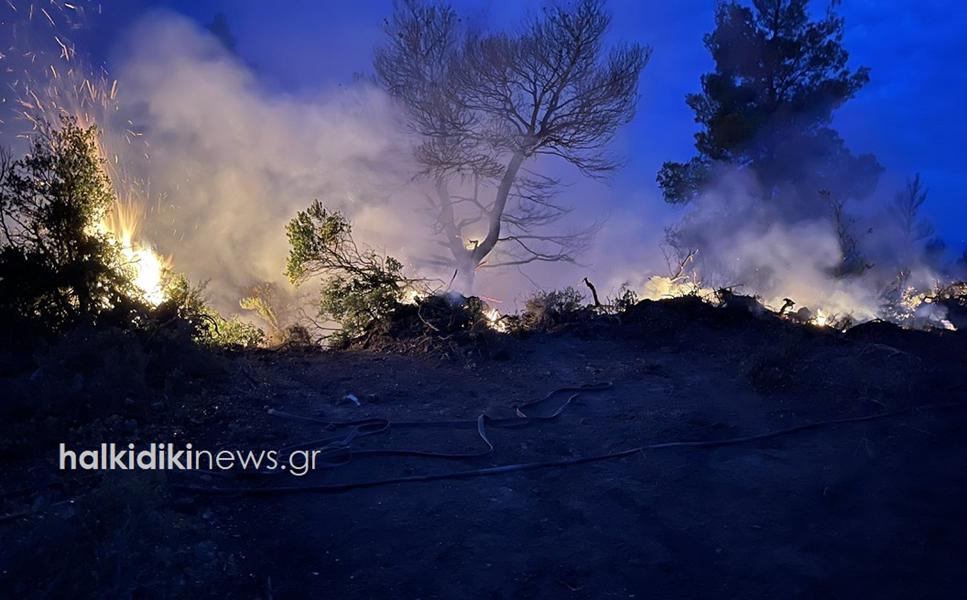 Παρότι η μεγάλη φωτιά που ξέσπασε χθες λίγο πριν τα μεσάνυχτα στον Τριπόταμο της Σιθωνίας έχει οριοθετηθεί, πυροσβεστικές δυνάμεις παραμένουν επί τόπου.